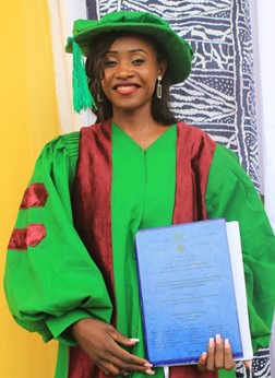 She enrolled at the University of Ngaoundéré in the Faculty of Sciences in Chemistry. Three years later she obtained a degree in Chemistry; two years later a Master’s degree in Inorganic Chemistry and after five years of doctoral thesis she defended a Doctorate/Ph.D in Inorganic Chemistry. Whose theme was »Study of the effectiveness of some microbial flora in a process of treatment of slaughterhouse effluent combining adsorption with biodegradation ».